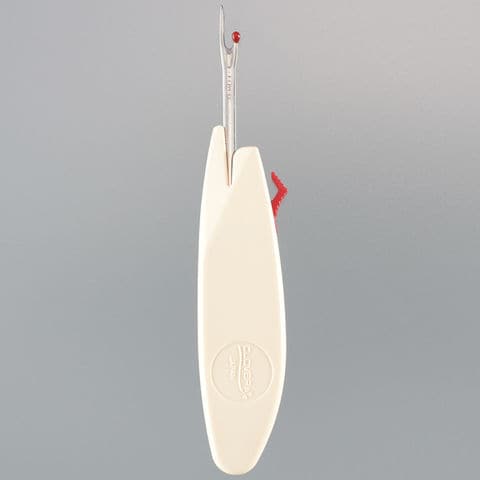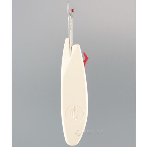 ボタンのスライドでリッパーにも糸切りにもなります。金属部分を出すと、リッパーとしてミシンの縫い目やしつけ糸を切る、ボタンの糸を切る、ボタンホールの穴あけなどに使えます。刃先は薄く、先端がなめらかになっているので、糸目にすっと入ります。また、糸目に差し込まない側には、生地を傷めない小さな玉が付いています。