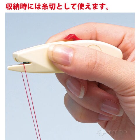 金属部分を持ち手の中に収納すると、切刃の部分だけが出て、糸切りとして使えます。