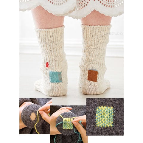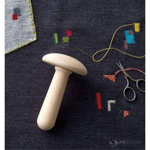 キノコ型の道具で穴のあいた靴下や衣類を簡単にお直しできます。また、ワンポイント刺しゅうとしても使えます。ダーニングとは、ヨーロッパの伝統的な修繕技術です。糸選びにより、簡単に刺しゅう感覚で可愛く仕上げられるので、現在でも幅広く受け入れられています。