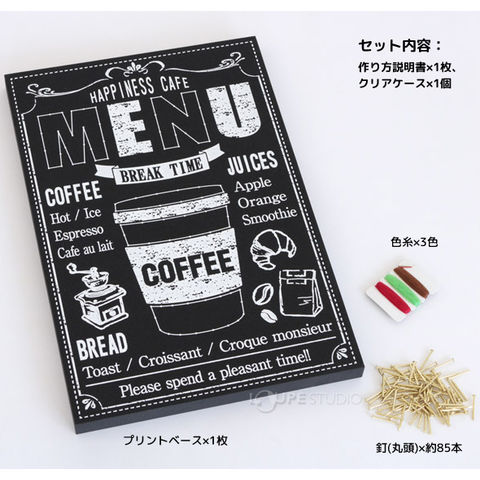 | セット内容 | プリントベース…1枚、色糸…3色、釘(丸頭)…約85本、作り方説明書…1枚、クリアケース…1個 |