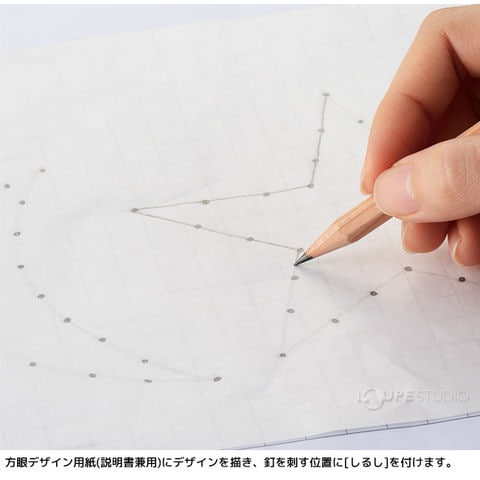- お好きなデザインが作れる実物大の方眼デザイン用紙付き。(説明書兼用)