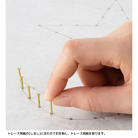 | 材質 | ベース/ポリエチレン、糸(#20)/ポリエステル100%、釘(丸頭#17X19mm)/真ちゅう、クリアケース/PP、トレース用紙/紙 |