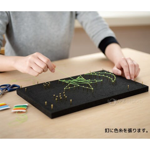 - インテリアDIYデコが手軽に楽しめます。ストリングボードはソフトなベースに釘を刺して色糸を張るだけの簡単テクニックで、おしゃれなストリングアートが楽しめるオールインワンキット。海外で人気です。