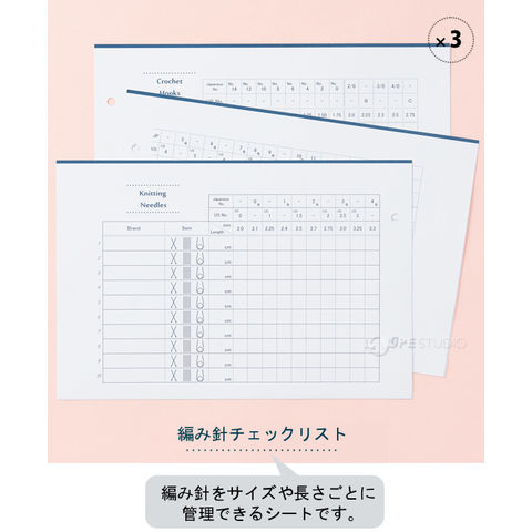 - お手持ちの針を管理できるチェックリストや、メモなどを保管できる封筒ページが付いています。