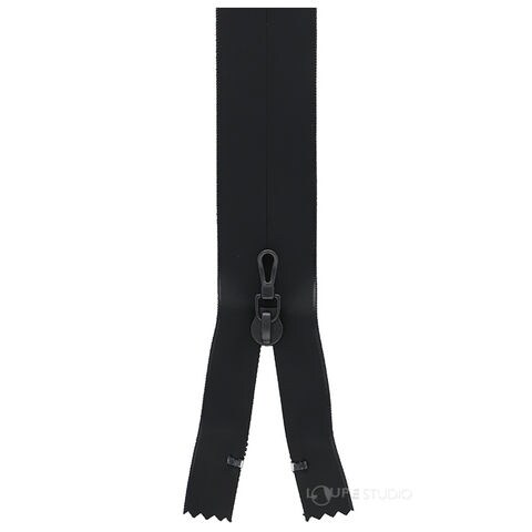 ブラックの金属製引手付き。ノンロックスライダーファスナーなので、バッグやリュックポケットなどにおすすめです。
