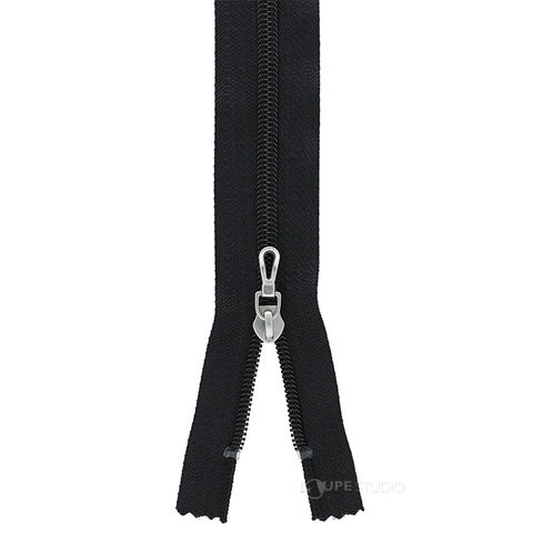 マットシルバーの金属製引手付き。ノンロックスライダーファスナーなので、バッグやリュックなどにおすすめです。