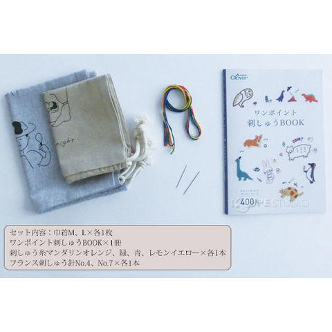 | セット内容 | 巾着M、L×各1枚 ワンポイント刺しゅうBOOK×1冊 刺しゅう糸マンダリンオレンジ、緑、青、レモンイエロー×各1本 フランス刺しゅう針No.4、No.7×各1本 |