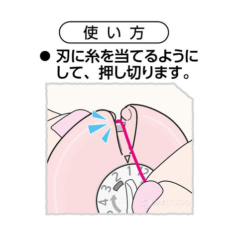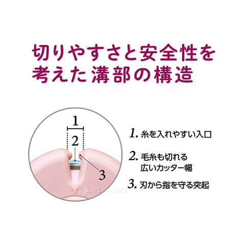 糸を当てるだけでサッと切れて作業効率アップ。チェーンピーシングの糸切りに便利です。毛糸・レース糸・刺しゅう糸のカットにも使えます。