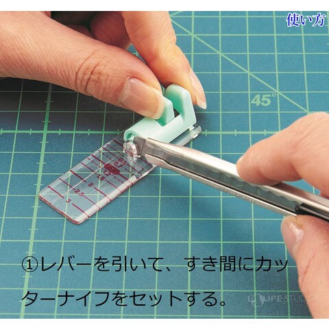 | ご注意 | ・必ずカッティングマットを敷いてご使用ください。 ・カッターナイフの本体(ホルダー)形状によってはご使用になれない場合があります。 ・布地や厚紙など、軽い力で切れないものには使用しないでください。 ※この商品にはカッターナイフは含まれません。 |