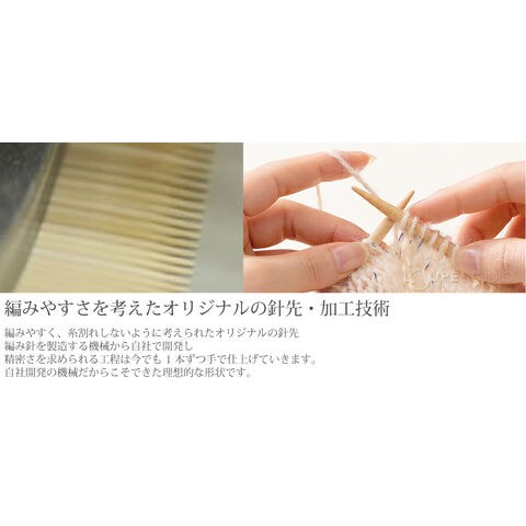 針先まで丹念に仕上げられた編み針は、編み心地が良く、編むほどに手になじみ、長く愛用していただける逸品です。