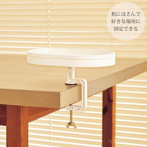 クランプ(ネジ留め式の固定金具)でかんたんに設置できるトレー。