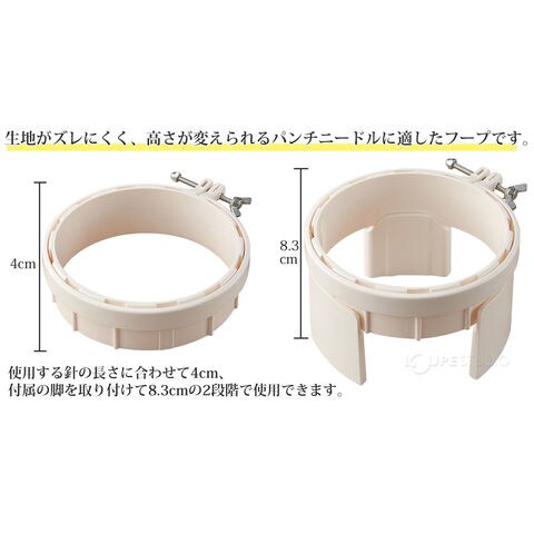 生地がズレにくく高さが変えられる、パンチニードルに適した刺しゅう枠です。