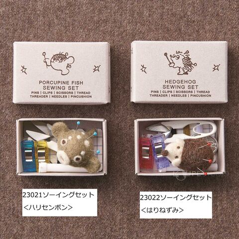 | 本体サイズ | ピンクッション(ハリセンボン)のサイズ/約4.5×2.5cm ピンクッション(はりねずみ)のサイズ/約4×2.5cm 収納箱/約4.6×7×2.7cm |