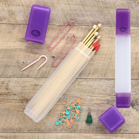 スッキリ収納、持ち運び便利。編み針・編み物用品ケース。バッグに納まりやすいデザインのプラスチック製編み針ケース。