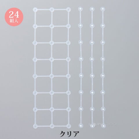 明るい色のレースやモチーフに付けても目立たないクリアタイプ 。
