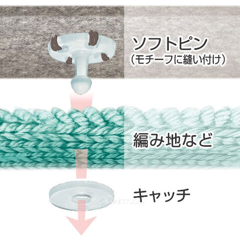 ※ソフトピンの突起部が無理なく通る、ニット地などの素材にお使いください。