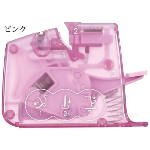 本体に凹みを作り、糸を押さえやすくしました。使い方手順はピクトグラムでわかりやすくしています。