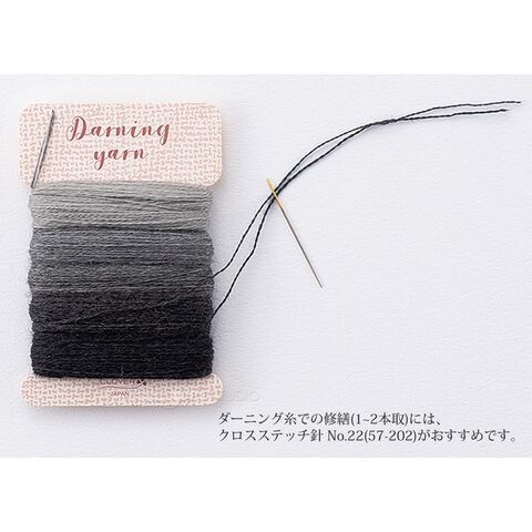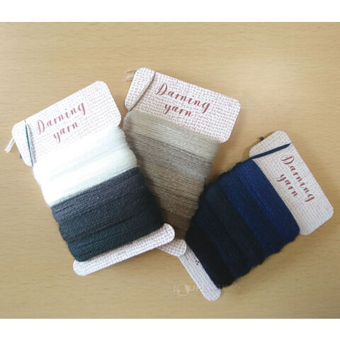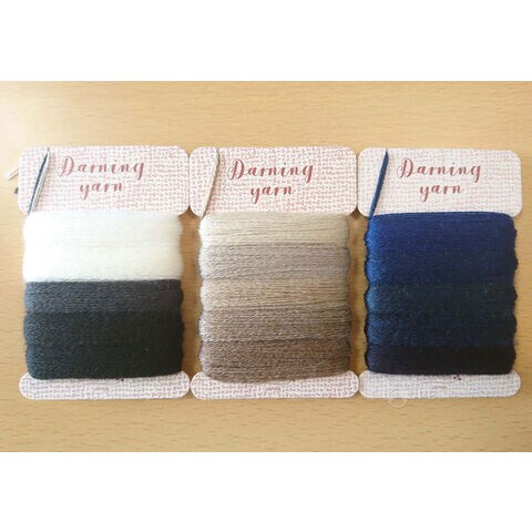 ひとつの糸巻きに、同系色の薄色から濃色まで5色の糸が巻かれているので、どんな濃さの衣類にも色合わせがしやすいダーニング糸です。