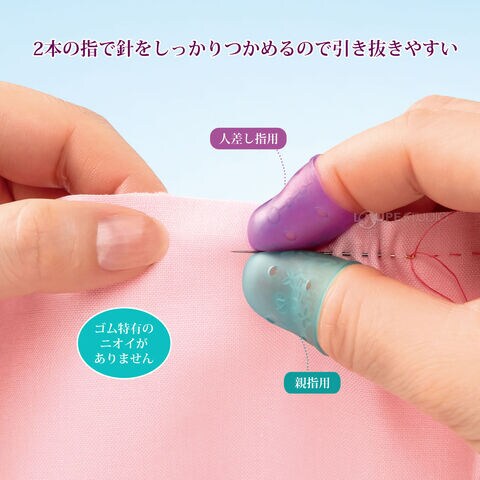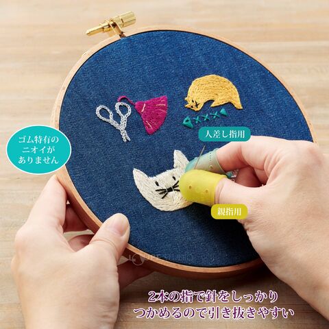 布から抜けにくい針をつかんでラクに引き抜ける、人差し指&親指用シンブルのセット。