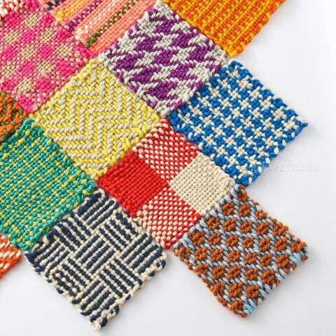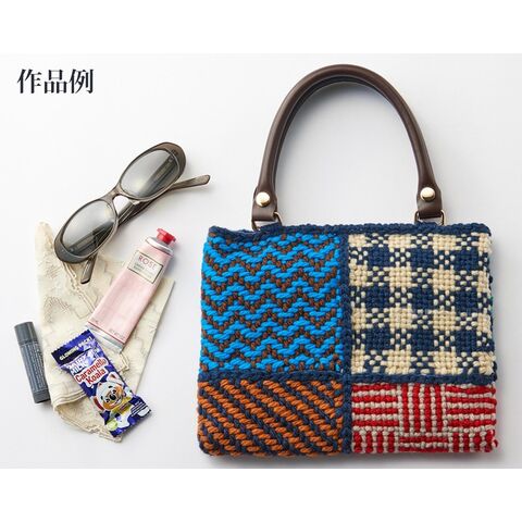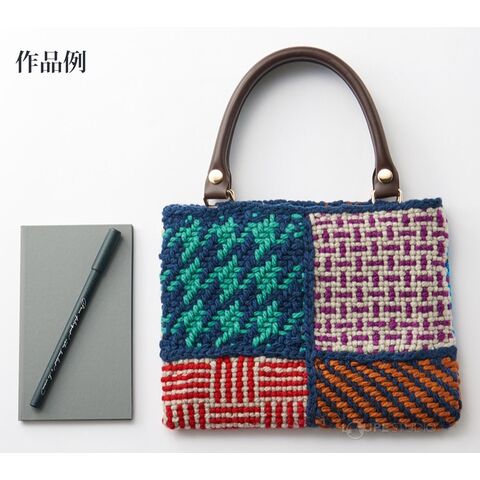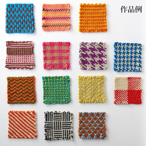 別売りのミニ織りを使って、模様編みが楽しめるセット。付いている糸で2枚ていどの模様編みのモチーフが作れます。
