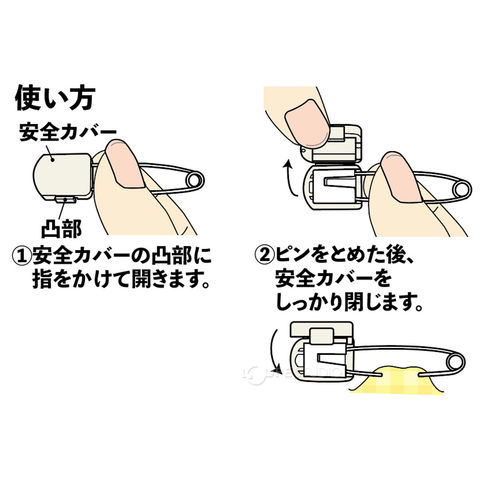 針がはずれにくいロック式機構のピンのヘッドをカバーでつつみ、安全性をさらに高めました。針がカバーからはずれる心配がなく、安全に気を使う赤ちゃんやお子様の衣類、ふとんカバー・毛布・シーツなどに安心して使えます。