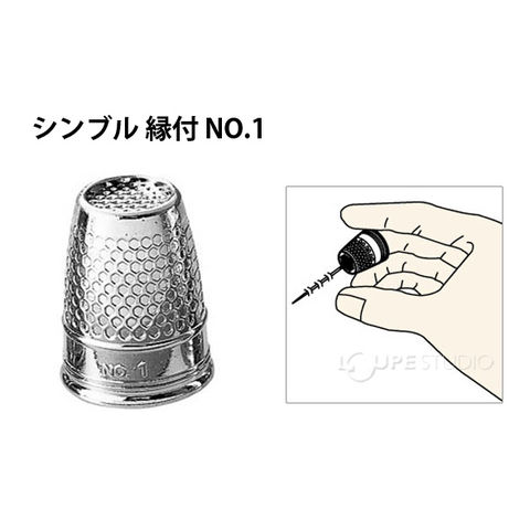 縁付で押す時に針がシンブルから外れにくくなっています。トップ(先端)に縁の付いた金属製シンブル。押す時に針がシンブルから外れにくくなっています。