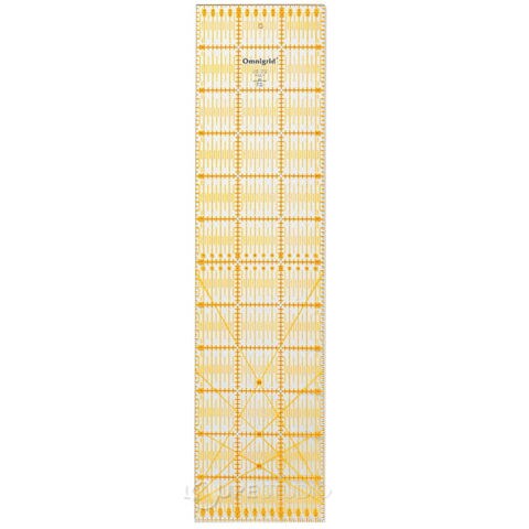 本場アメリカのキルターも愛用するオムニグリッド定規。2色の目盛り、左右対称の角度など使いやすい工夫がいっぱいです。