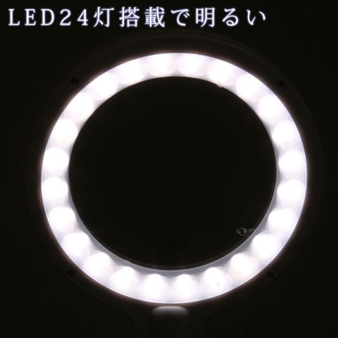 高輝度白色LED(SMDLED)を24灯も搭載し、調光機能もついた便利なルーペです。