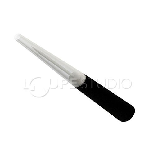 滑りにくいラバーグリップデスクで転がらない楕円形状キャップが針先を保護!