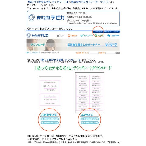 貼ってはがせる名札 W-A4 パーティー 同窓会 便利 手軽 シール名札 デビカ イベント パーティー 展示会 シール名札 用紙サイズ A4 名札 幼稚園 子供スペック