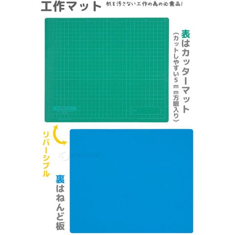 表はカッターマット、裏はねんど板。 両面使えて便利です。カットしやすい5mm方眼入りです。グリーン購入法適合商品。