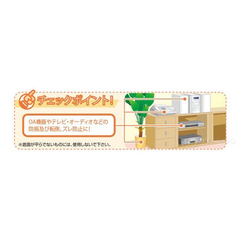 優れた振動吸収能力により、家具などの転倒を防ぎます。日本製でシックハウス基準に対応した安全素材を使用しています。