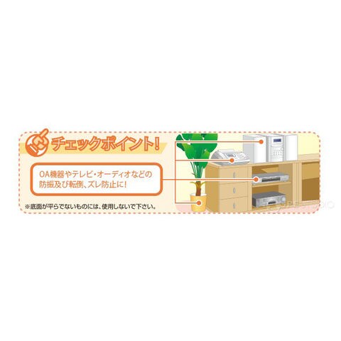 優れた振動吸収能力により、家具などの転倒を防ぎます。日本製でシックハウス基準に対応した安全素材を使用しています。
