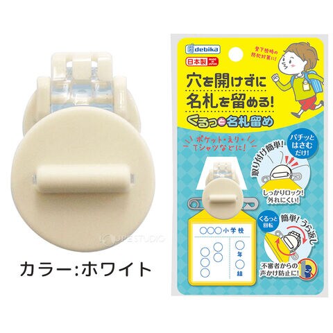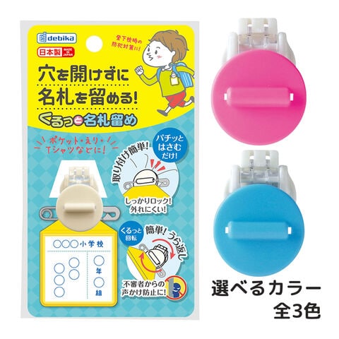 名札 穴が開かない クリップ 穴を開けずに くるっと名札留め 防犯対策 白 青 桃 色 キッズクリップ 簡単取付 服に穴が開かない 名札留め 穴を開けない ホワイト ブルー ピンク 子供 子ども 小学生 入学式 入学 準備 幼稚園