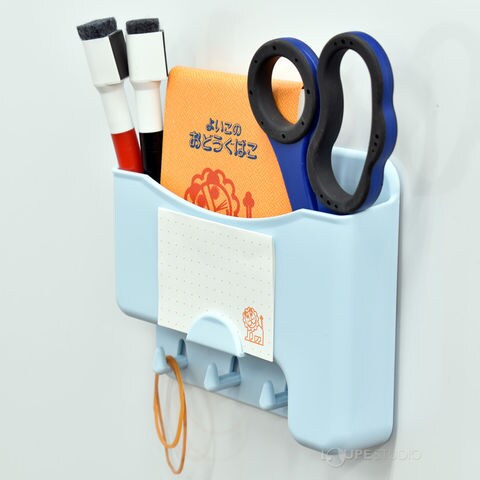 冷蔵庫にピタっとくっつく整理上手な小物入れです。・フック、マグネット付きでよく使うものをスッキリ収納!・ホワイトボードや冷蔵庫にマグネットで貼り付けて小物の整理に! ・筆記具、カッター、定規などの整理にちょうど良い。・カードやメモをはさめるクリップ付き。