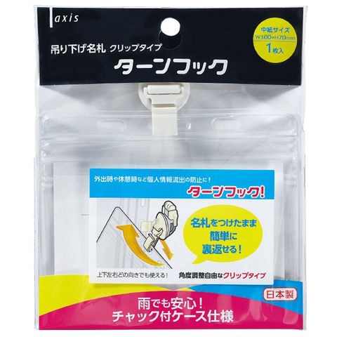 吊り下げ名札 ターンフック IDケ-ス クリップ カードケース 事務用品 名札入れ 穴 開かない チャック付き 防水 デビカ
