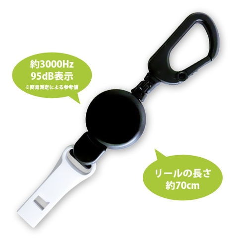 ホイッスル 防災 日本製 大容量 95dB 笛 ホワイト 伸びる リール ストラップ キーホルダー カラビナ ブラック 子供 キッズ 防犯 防災グッズ カバン ランドセル 緊急用 体育 地震 災害 スペック