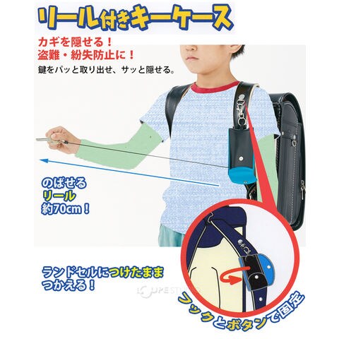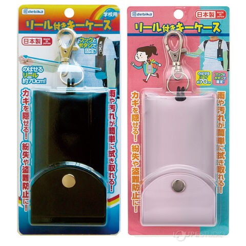 リール付き キーケース リール付き 子供 子ども ランドセル 小学生 女の子 男の子 カギ 盗難 紛失防止 人気 キーホルダー 鍵入れ 伸びる デビカ ブラック パープル 日本製