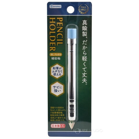 消しゴム付 補助軸 鉛筆 えんぴつ 真鍮 クロームメッキ 鉛筆キャップ 文具 子供 学校 デビカ