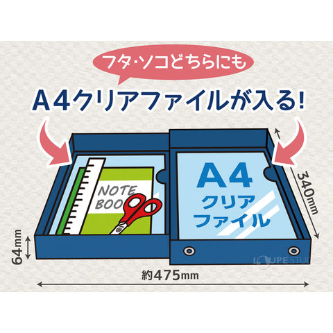 - フタと底のどちらにもA4クリアファイルが入ります。