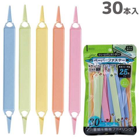 ペーパーファスナー 5色×各6本 30本入 綴じ具 ファイル 事務用品 とじる 綴り用品 2穴 書類 デビカ