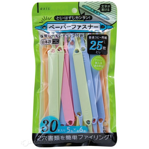 ペーパーファスナー 5色×各6本 30本入 綴じ具 ファイル 事務用品 とじる 綴り用品 2穴 書類 デビカスペック