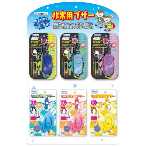 | セット内容 | 光る!耐衝撃非常用ブザー(ネイビー、ライトブルー、パープル)各3個 ミニ非常用ブザー(ブルー、ピンク、イエロー)各3個 |