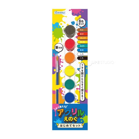 アクリル 絵の具 えのぐ 8色セット 絵具 黒 白 青 緑 黄色 オレンジ 赤 茶 筆1本付き おすすめ お絵かき 工作