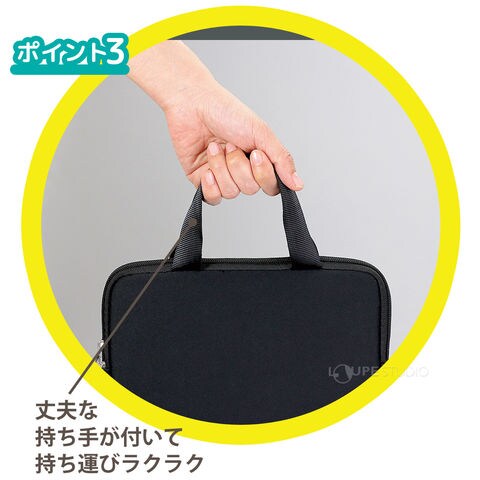 - 丈夫な持ち手がついて、持ち運びやランドセルからの取り出しに便利。
