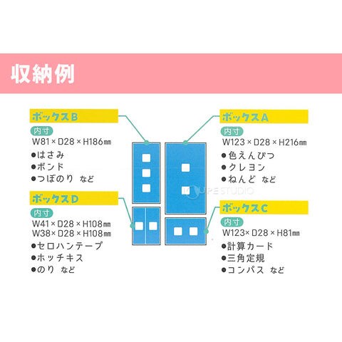 机の中を整理整頓して学習環境を整えるのに最適な整頓ボックスです。