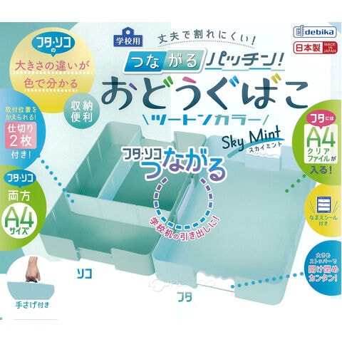 お道具箱 小学校 ツートンカラー ミント お客様の声から生まれた プラスチック 日本製 小学校 男女兼用 小学生 学童文具 入学 A4W対応 つながるパッチン! 水色 学校引き出し 男の子 女の子 大人向け かわいい おしゃれ デビカスペック