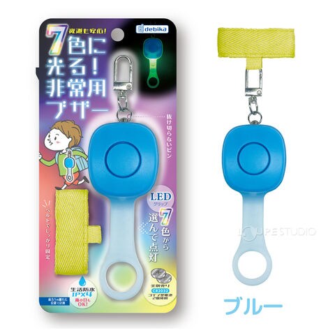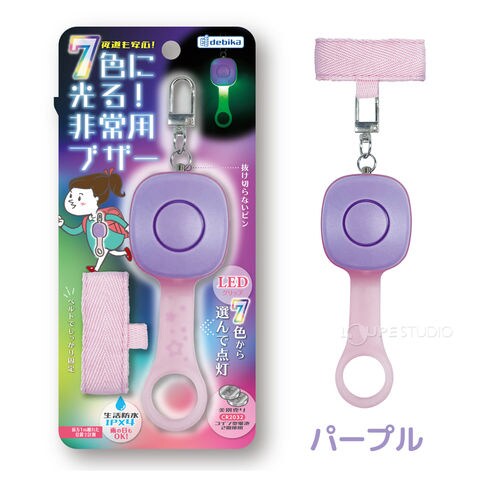 防犯ブザー 大音量 90dB 7色に光る!非常用ブザー 生活防水 IPX4 ランドセル 防犯 事故防止 ブル一 パープル レインボー LEDクリップ 子ども 女の子 女性 大人 男の子 かわいい 小学生