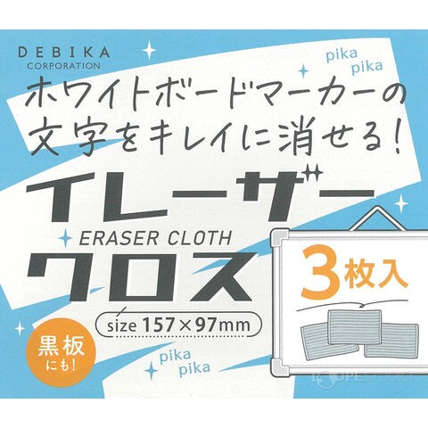 イレーザークロス 3枚入り ホワイトボード ブラックボード ボード消し ホワイトボード用イレーザー イレーサー ミニ 黒板消し風 エコ ガラス ノートボード 消し跡 汚れ 拭き取り 大掃除 クロス 文房具 オフィス用品 デビカ Debika スペック