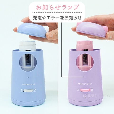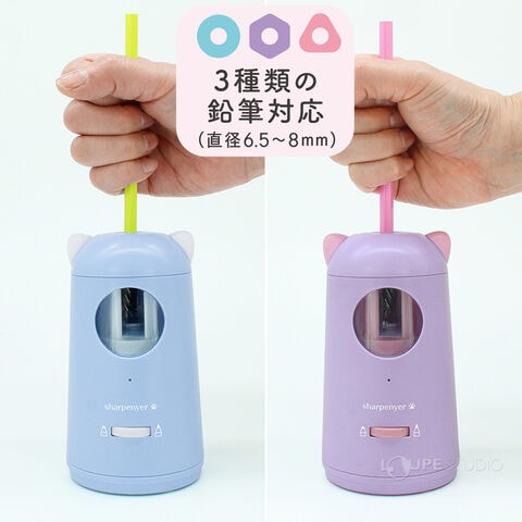 猫耳 鉛筆削り 電動 USB 充電式 シャープニャー 電動シャープナー ブルー パープル 青 紫 かわいい 電動鉛筆削り 電動鉛筆削り器 えんぴつけずり 猫 ねこみみ えんぴつ削り 小学生 子供 男の子 女の子 ギフト 入学準備 プレゼント デピカスペック